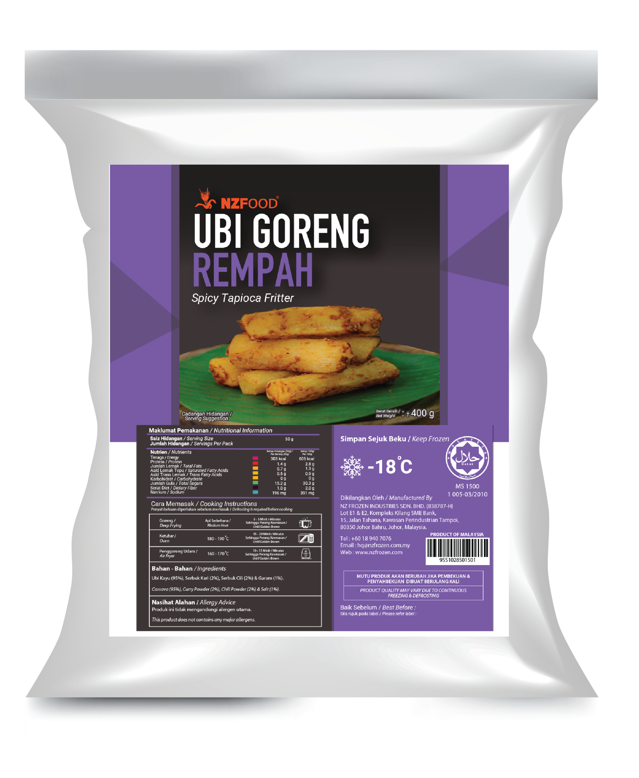 Made from fresh yam slices coated in a flavourful spiced batter, NZFood Ubi Goreng Berempah delivers a warm savoury aroma with a satisfying natural yam tasted in every bite. Each piece fries to a golden crisp, creating a comforting balance of crunchy texture and soft interior.