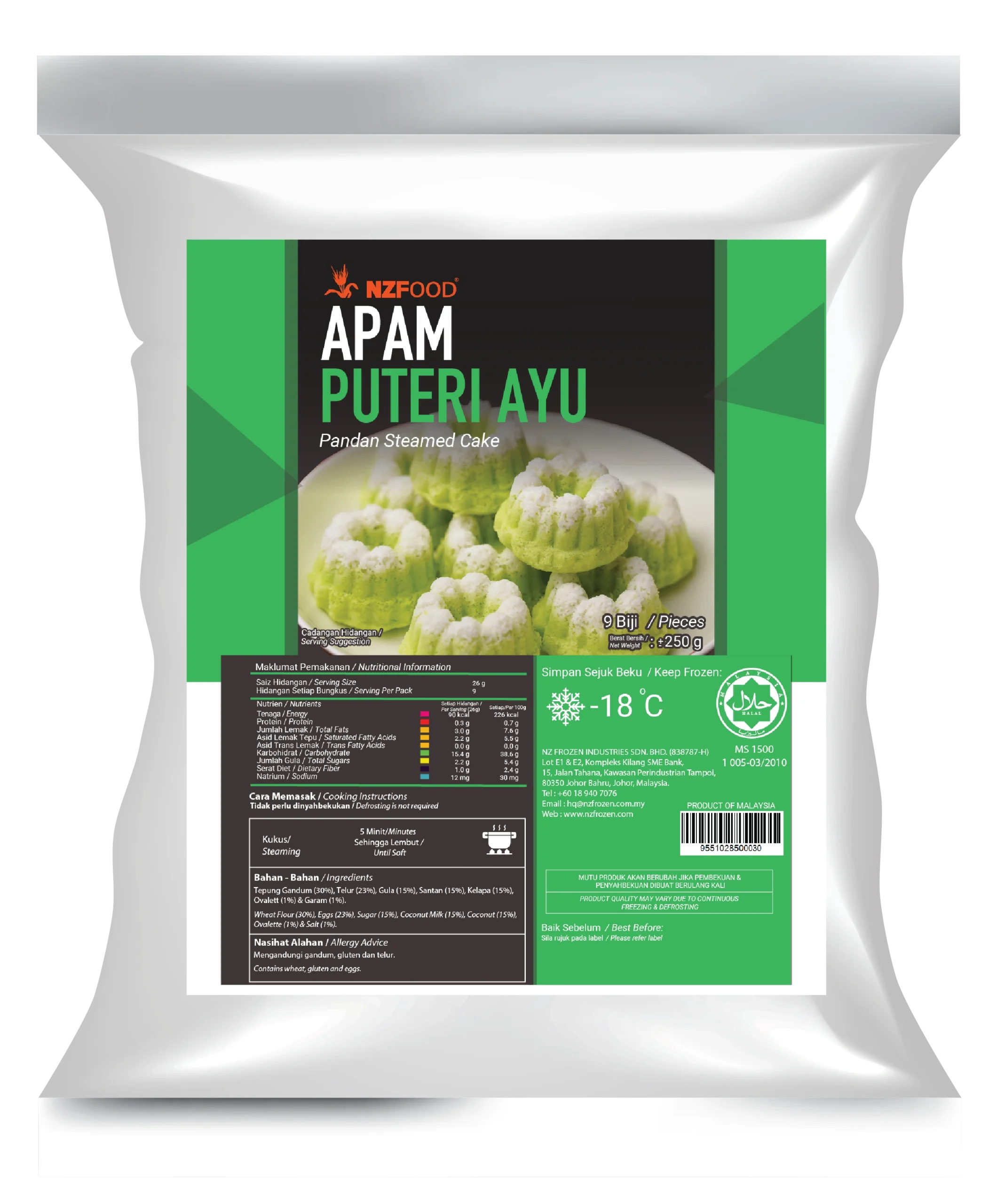 Soft and fluffy with a fragrant pandan aroma, NZFood Apam Puteri Ayu offers texture paired with delicate coconut flavour in every bite. Its naturally gentle sweetness makes it enjoyable on its own as a comforting traditional treat.