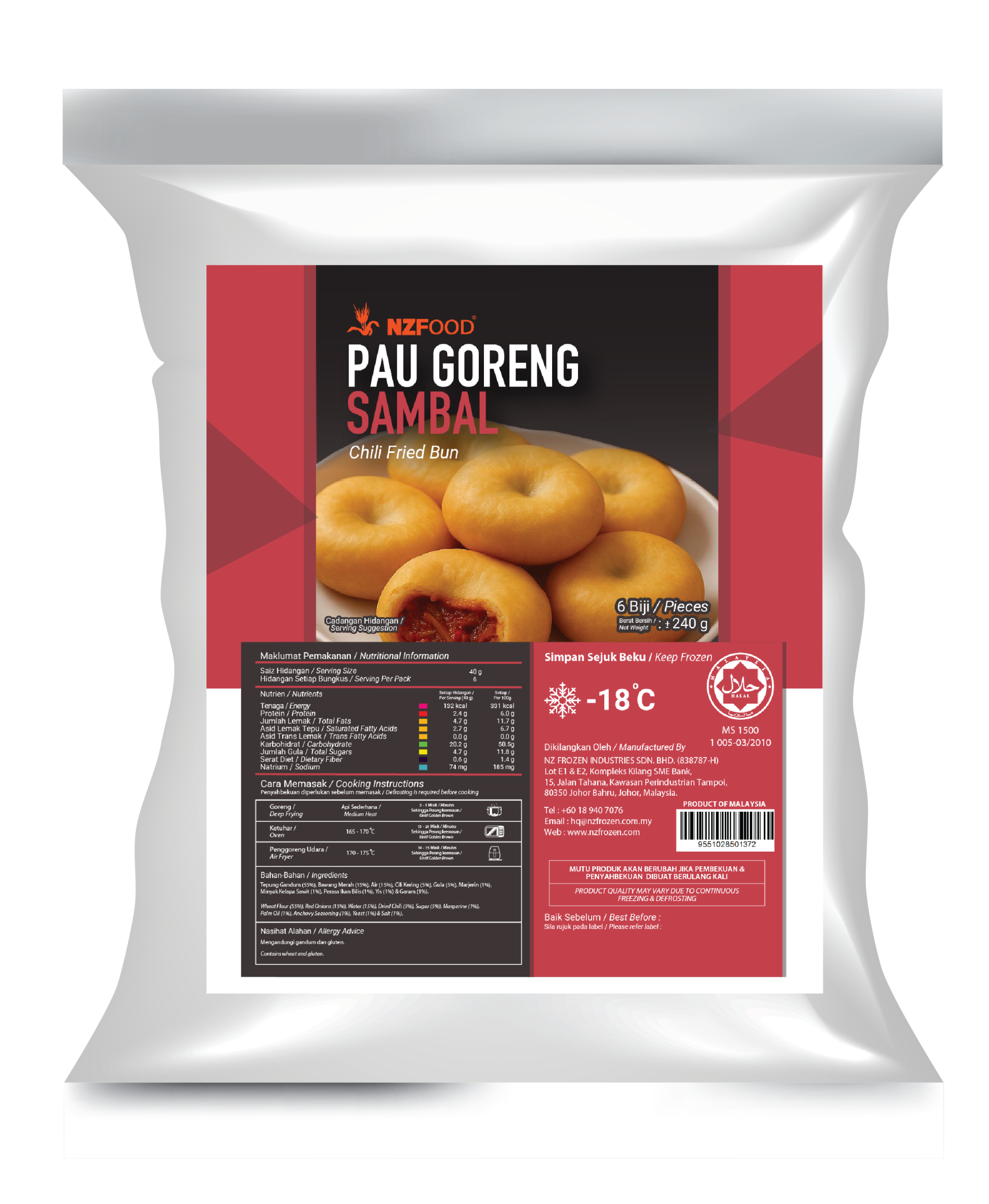 NZFood Pau Goreng Sambal features a soft and fluffy bun filled with a spicy and flavourful sambal mixture. Each piece fries to a golden, slightly crispy exterior while keeping the filling rich, savoury, and irresistibly tasty.