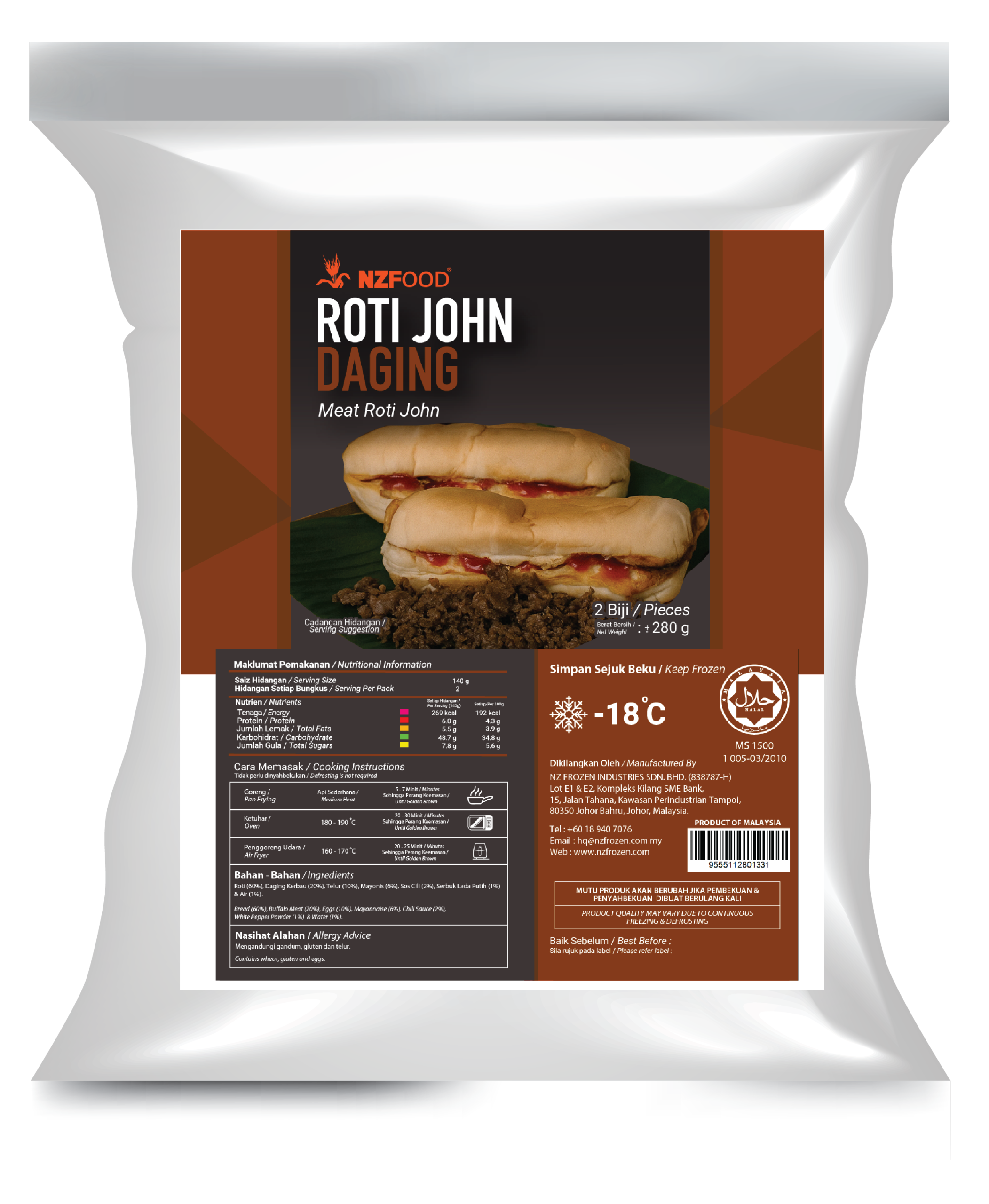 Bring the taste of the night market to your home with NZFood Roti John Daging. Each pack contains two ready-to-cook chicken sandwiches made with soft buns and a flavourful minced chicken filling. Perfect for breakfast, tea-time, or a late-night snack. Just heat from frozen for a satisfying, hearty meal in minutes.